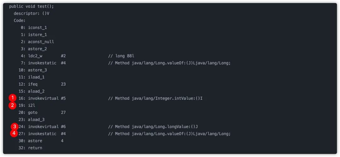上述代码转化比较麻烦,我们先从字节码上来看:
