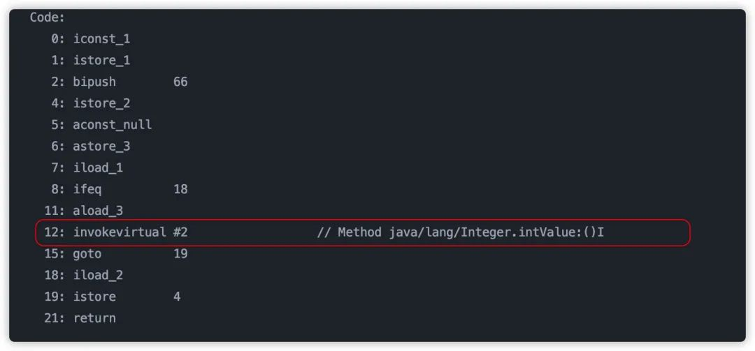 可以看到字节码中加入一个拆箱操作,而这个拆箱只有可能发生在 nullInteger。