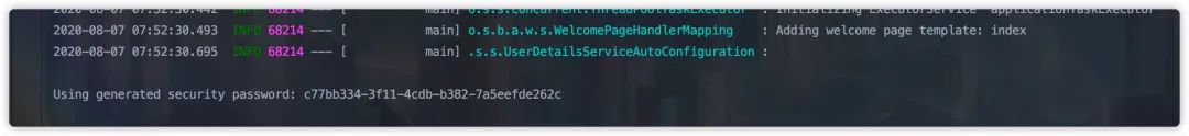引入上面的依赖之后,应用启动之后将会生成一个随机密码,然后所有的请求将会跳转到一个 Spring security 的页面。