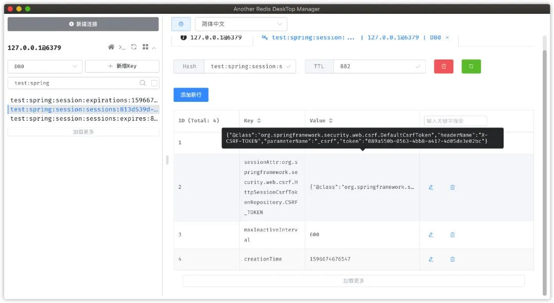 配置完成之后,Spring Session 就会开始管理 Session 信息,下面我们来测试一下: