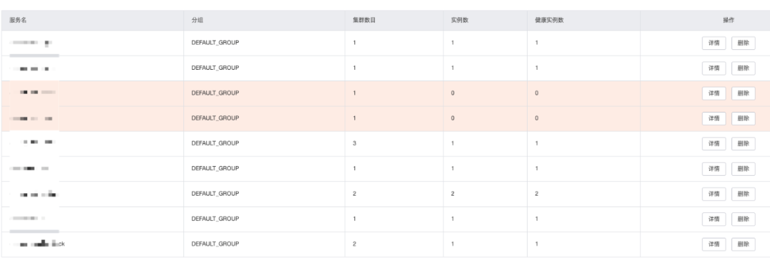 当所有的服务都接入 Nacos 过后,我们在 Nacos 的后台就可以看到每个服务的情况,如下图,可以看到服务状态。