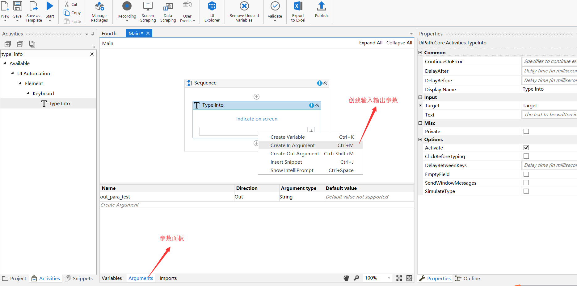 用于将数据从一个项目传递到另一个项目。在全局意义上,它们类似于变量,因为它们动态地存储数据并传递给它。变量在活动之间传递数据,而参数在自动化之间传递数据。因此,它们使你能够一次又一次地重用自动化。