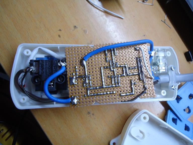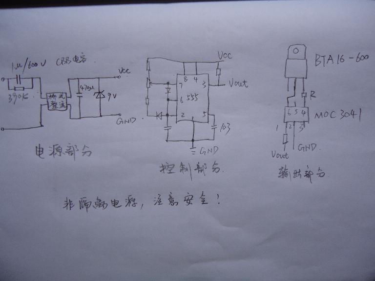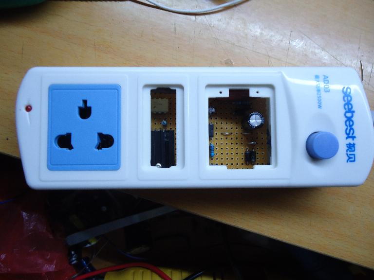 控制部分就一个相当于占空比调节东东,单片机就大材小用了,用555就很好了,几毛钱,比例就用电位器调节。买个插座,掏空下,裁剪一块洞洞板,焊好零件。