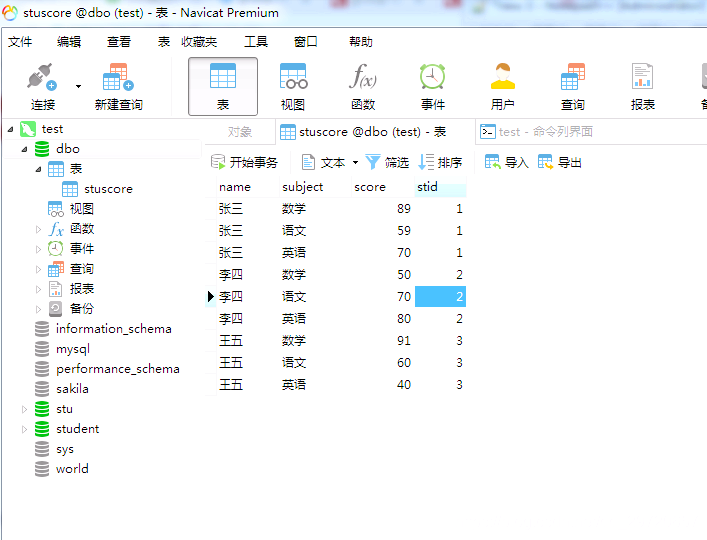 九、查询数学成绩在2-3名的学生(要求显示字段:学号,姓名,科目,成绩)