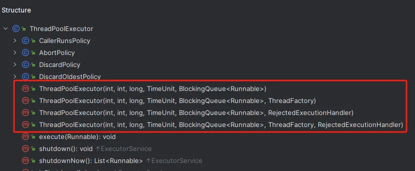 实际上内置的线程池也是调用 ThreadPoolExecutor 来创建的线程池:
