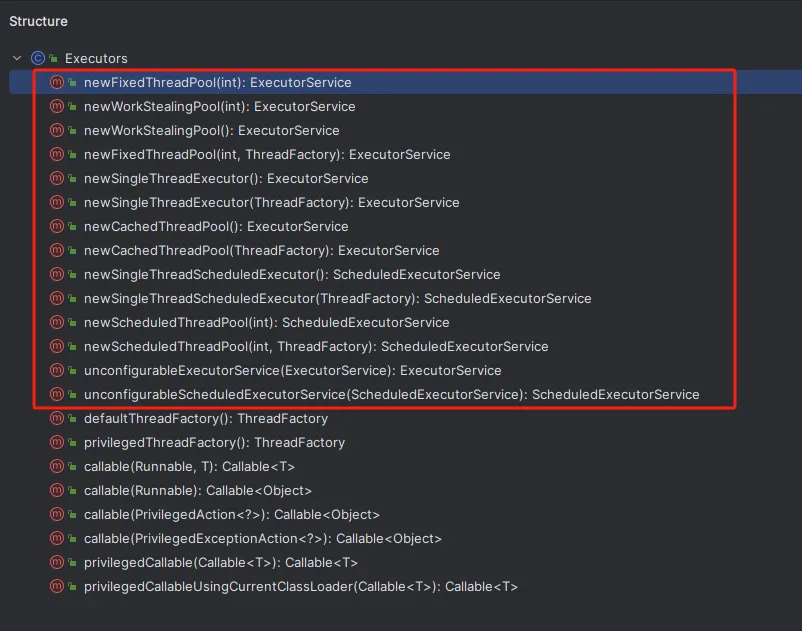 Executors 工具类提供的创建线程池的方法如下图所示: