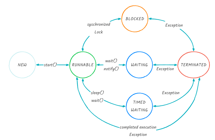 * 处于阻塞状态的线程正在等待监视器锁,以进入同步代码块或在调用wait()后重新进入