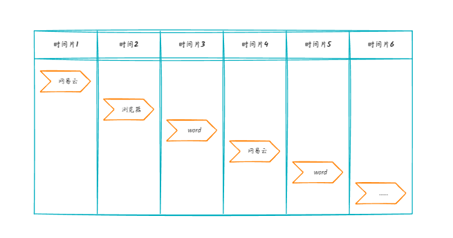 现代的操作系统(Windows,Linux,Mac OS)等都可以同时打开多个软件(任务),这些软件在我们的感知上是同时运行的,例如我们可以一边浏览网页,一边听音乐。而CPU执行代码同一时间只能执行一条,但即使我们的电脑是单核CPU也可以同时运行多个任务,如下图所示,这是因为我们的 CPU 的运行的太快了,把时间分成一段一段的,通过时间片轮转分给多个任务交替执行。