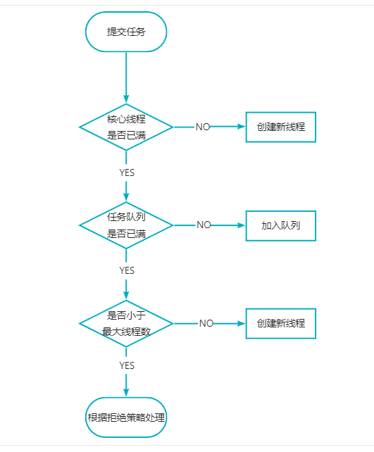 - 根据创建线程池时设置的拒绝策略来处理新提交的任务。