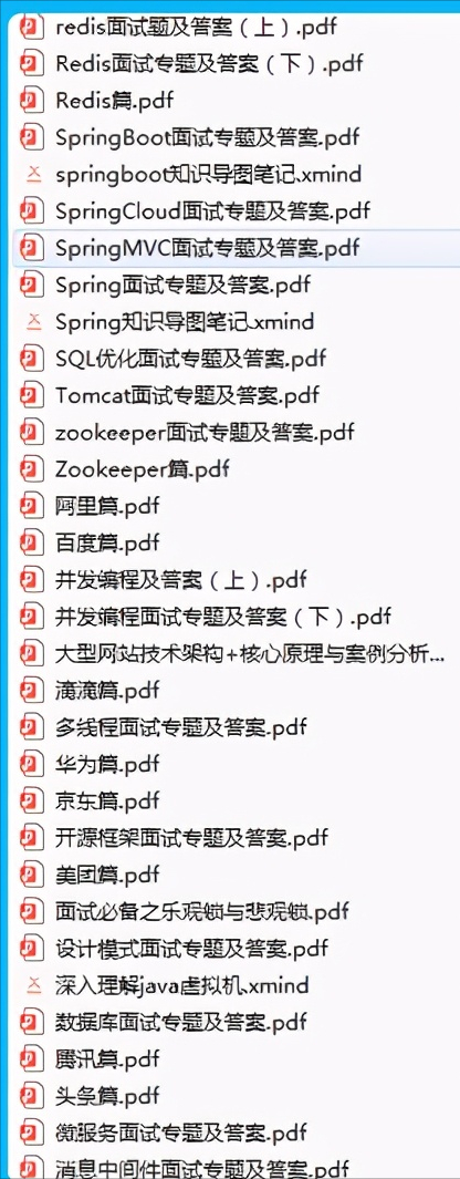 除了上面亲身经历的面试问题 小编还为大家整理了大量华为、京东 美团, 滴滴方面的面试题。由于篇幅问题 下面将展示分享的内容。文中所出现的所有资料,小编都以整理成PDF文档,有需要学习的朋友文末有领取方式!