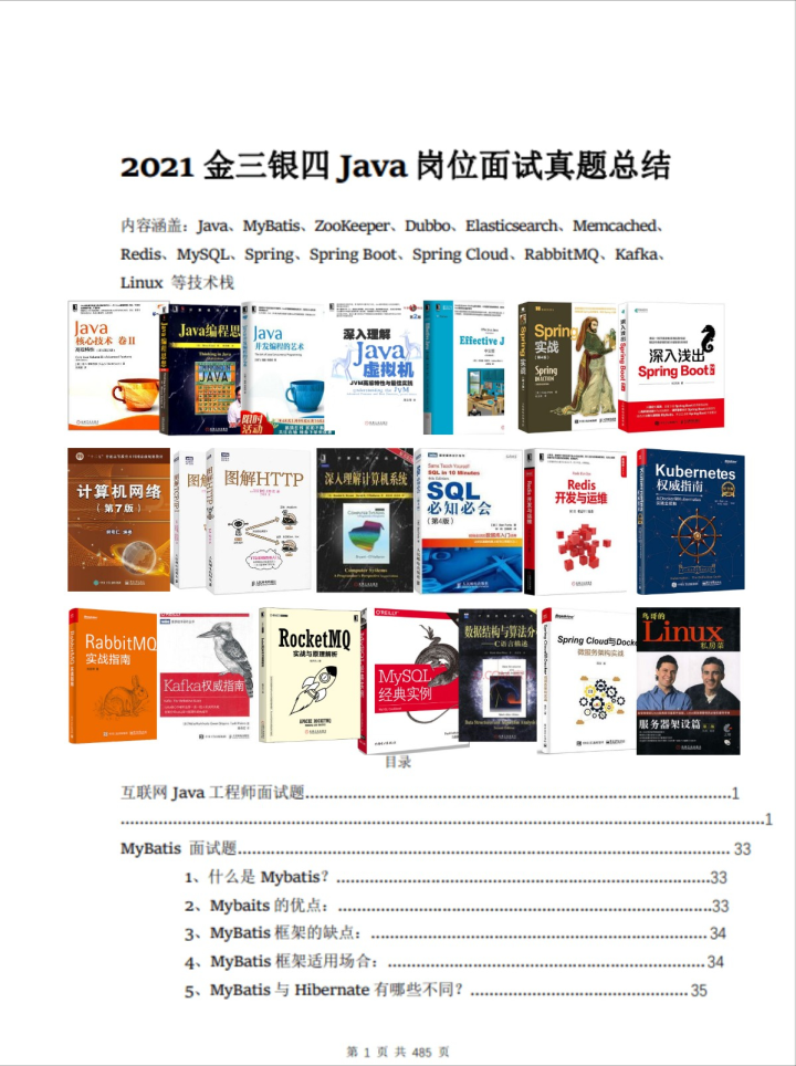 准备实习或者跳槽但又心里没底的兄弟都可以拿我整理的这份2021金三银四Java岗位面试真题总结自测一下,图中的20本Java学习经典书籍也可以免费领取电子档。