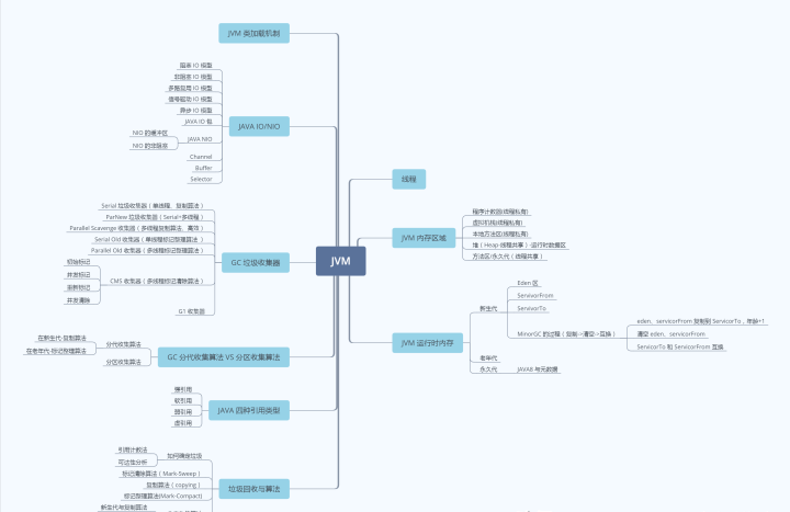 2、JVM:线程、内存区域、运行时内存(新生代/老年代/永久代)、垃圾回收与算法、JAVA 四种引用类型、GC 垃圾收集器、JVM 类加载机制等。