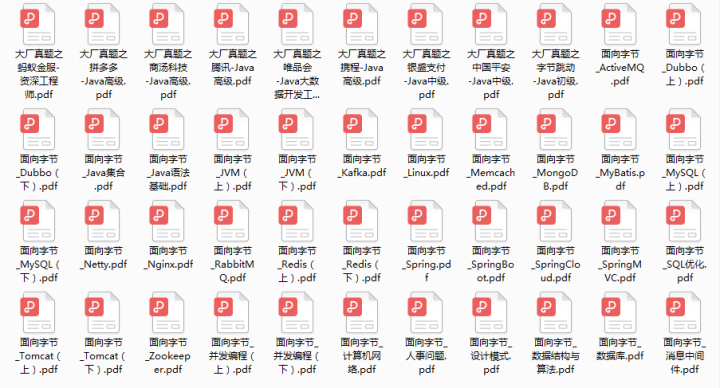 上面的话,只是提到了面试的时候面试官的一些提问,由于篇幅的原因没有把6面阿里、5面字节的面试题以及所有这些面试题的答案分享出来。
