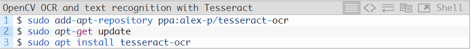 对于 Ubuntu 18.04 版本的用户,Tesseract 4 是主 apt-get 库的一部分,这使得通过下列命令安装 Tesseract 非常容易: