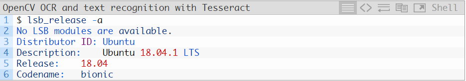在 Ubuntu 上安装 Tesseract 4 的具体命令因你使用的 Ubuntu 版本而异(Ubuntu 18.04、Ubuntu 17.04 或更早版本)。你可使用 lsb_release 命令检查 Ubuntu 版本:
