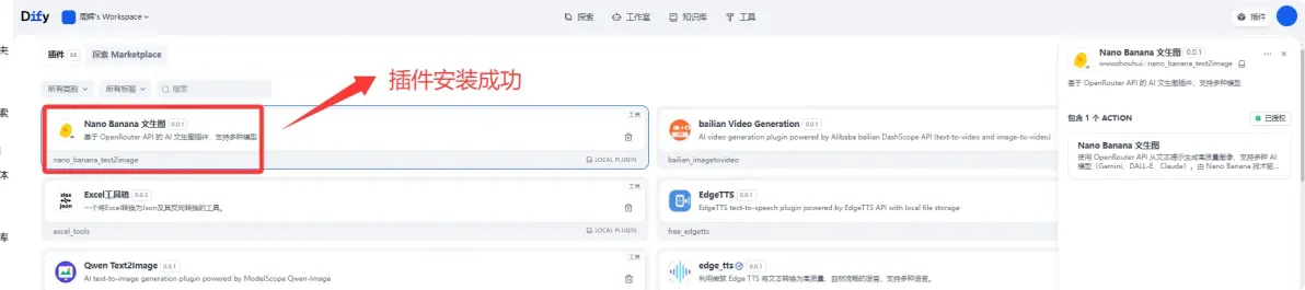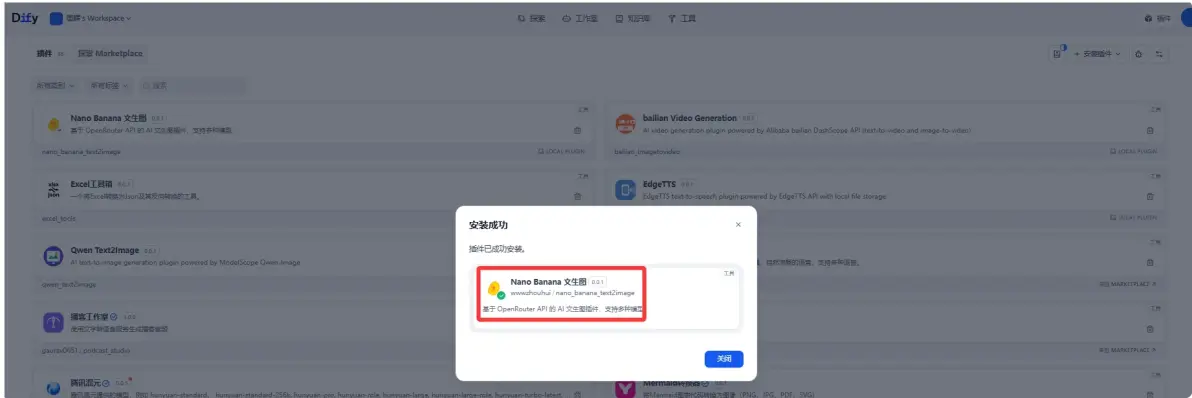 点击安装后 插件在dify平台上实现安装了,我们稍等片刻。