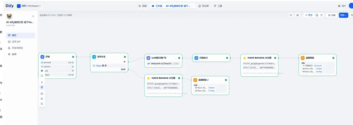 最近这个Nano Banana非常火爆,考虑到这个模型国内很多小伙伴不能直接访问,今天我也来凑个热闹,使用dify做了个插件,然后在dify平台上实现了这个Nano Banana。我们看一下生成的效果。