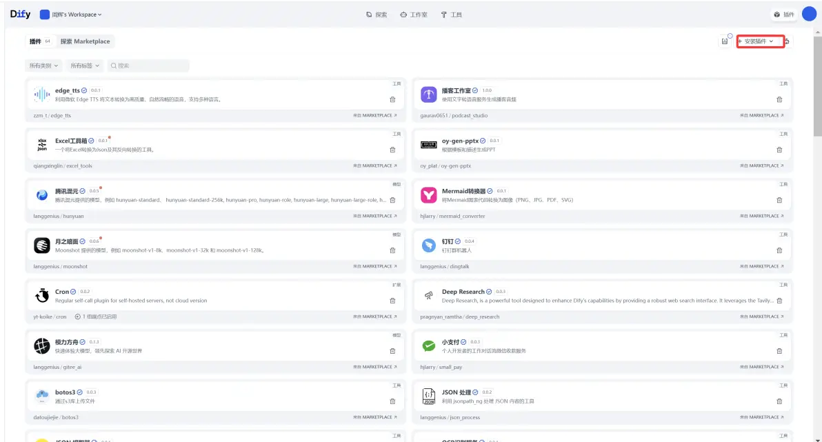 打开我们本地或者私有化部署的dify平台,插件管理