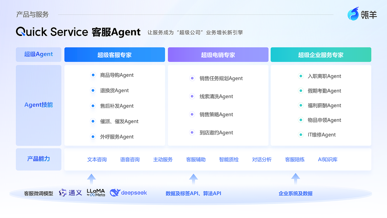 “真正可落地的企业级应用,一定是大模型+小模型+Agent的组合拳,缺少任何一个,企业都无法真正用起来。基于阿里和瓴羊在电商客服、电销和企业服务三个场景打磨多年的实操经验,我们率先推出这一批真正落地、真有效果的超级Agent专家。”阿里巴巴集团副总裁、瓴羊CEO朋新宇表示。