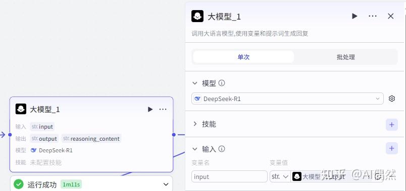 这个节点的作用就是批改作业,使用的是 DeepSeek-R1 思考模型。