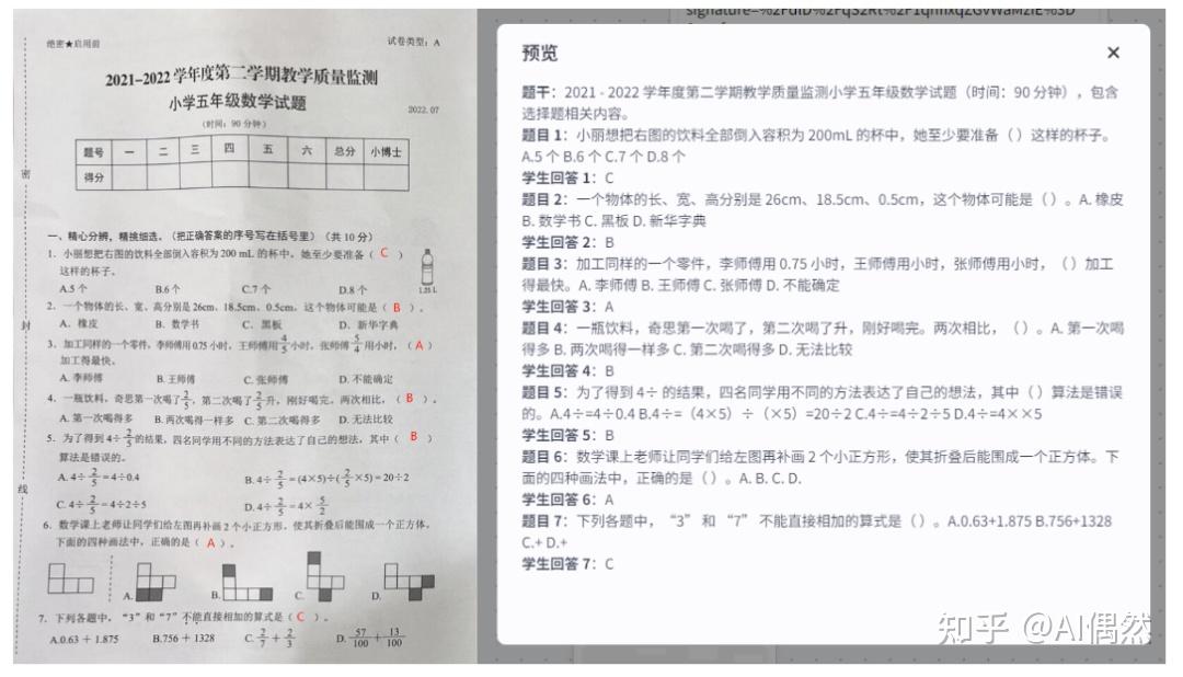 1.当接收到试卷相关内容时,精确解析其中的题目信息,完整保留题于,题目以及学生的回答。