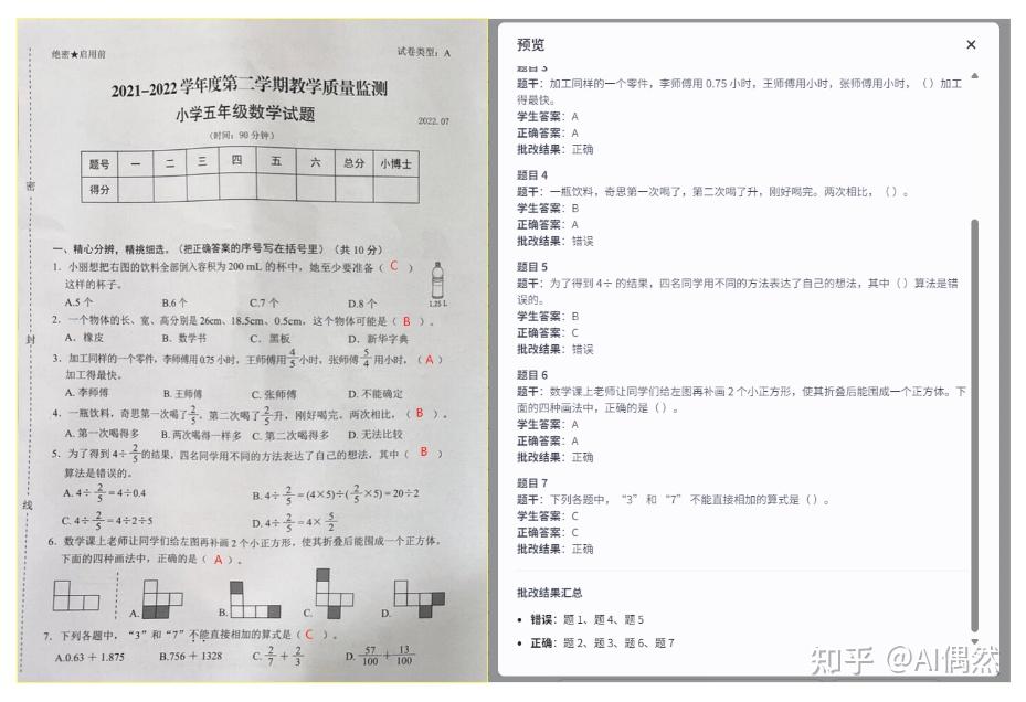 2.判断答案的正确性,依据数学原理和规则给出批改结果。