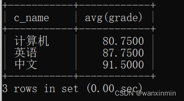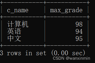 select c_name,MAX(grade) as max_grade from score group by c_name;