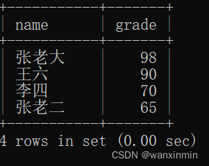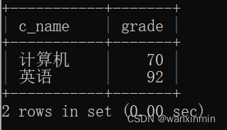 select c_name,grade from score inner join student on score.stu_id = student.id where name='李四';