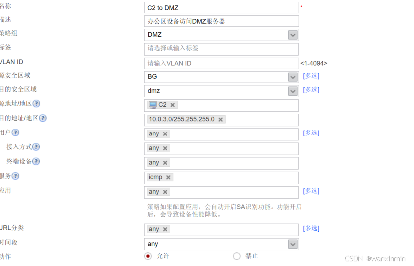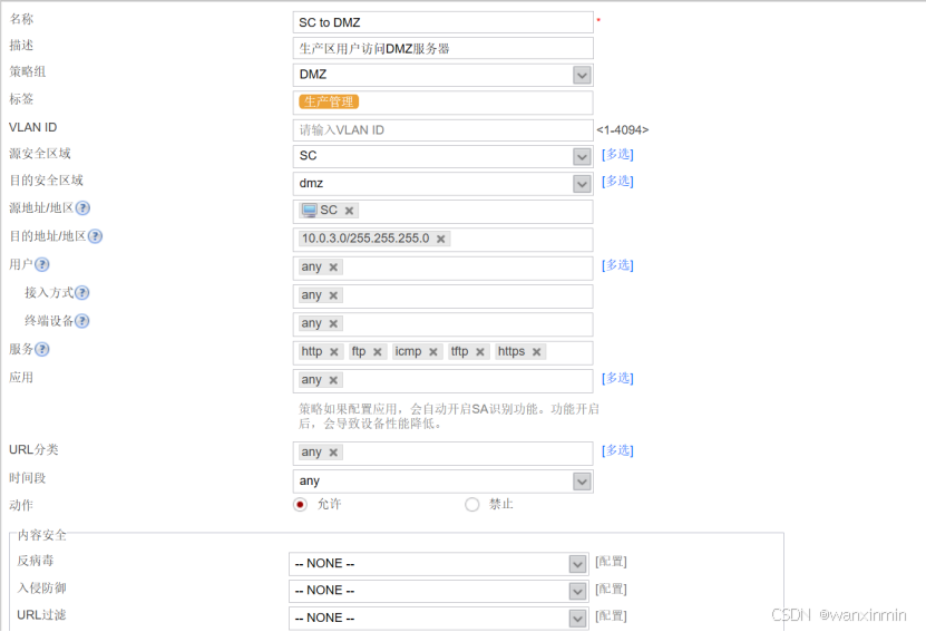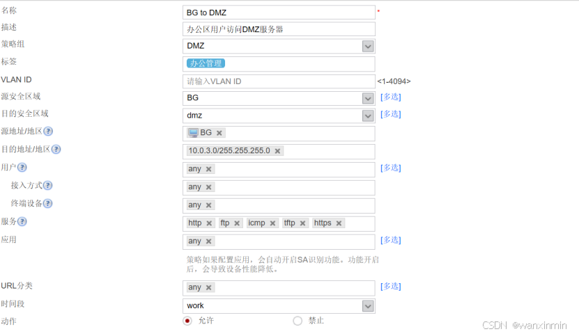 任务1:DMZ区内的服务器,办公区仅能在办公时间内(9:00-18:00)可以访问,生产区的设备全天可以访问。
