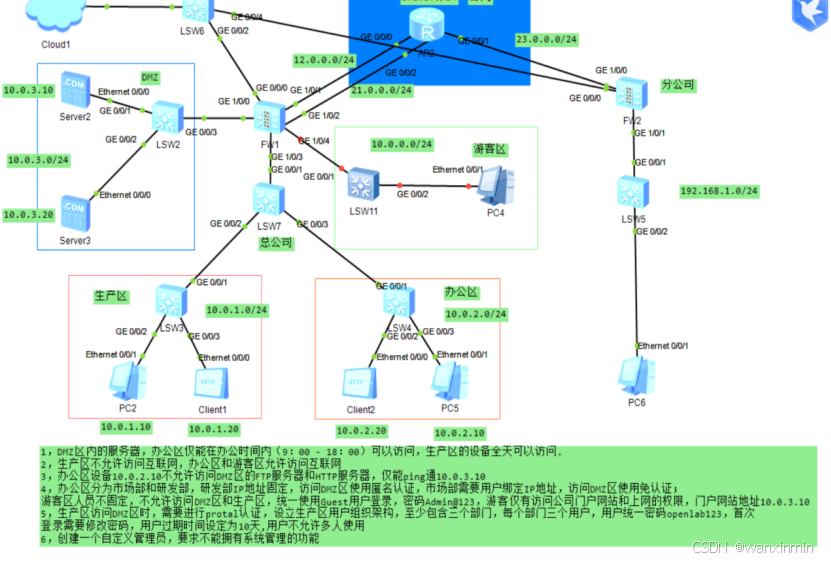 任务2:生产区不允许访问互联网,办公区和游客区允许访问互联网
