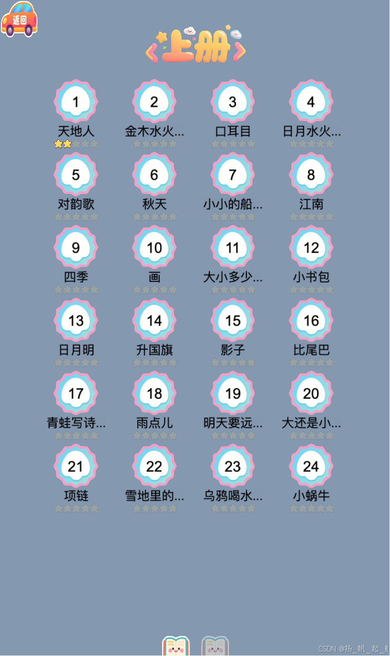 翻阅了孩子学习的语文课本,发现孩子们需要记住每篇课文中的识字与写字,打算就以识字与写字为基础做一个找字小游戏。经过调研现在全国的小学语文,基本上都统一使用人教版本,所以做出来的小游戏可以涵盖大部分地区,帮助更多的孩子快乐学习。