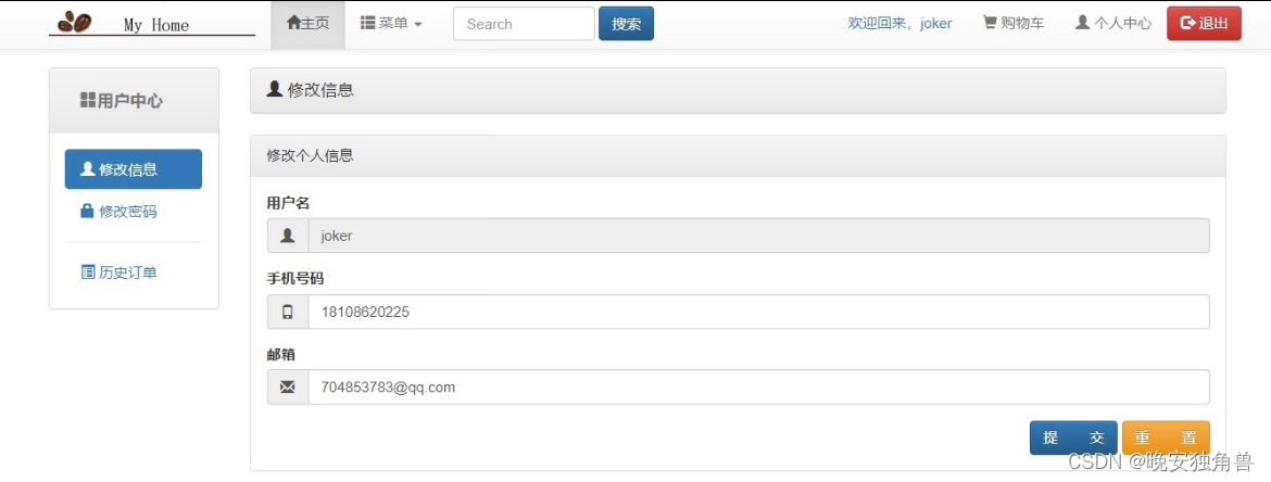项目升级: 前端的话有条件使用vue +element等潮流的前端框架,前后端分离开发; 后台引入中间件 如消息队列+缓存Redis , 微信支付(根据业务定),Jwt单点登录,爬虫,算法等!