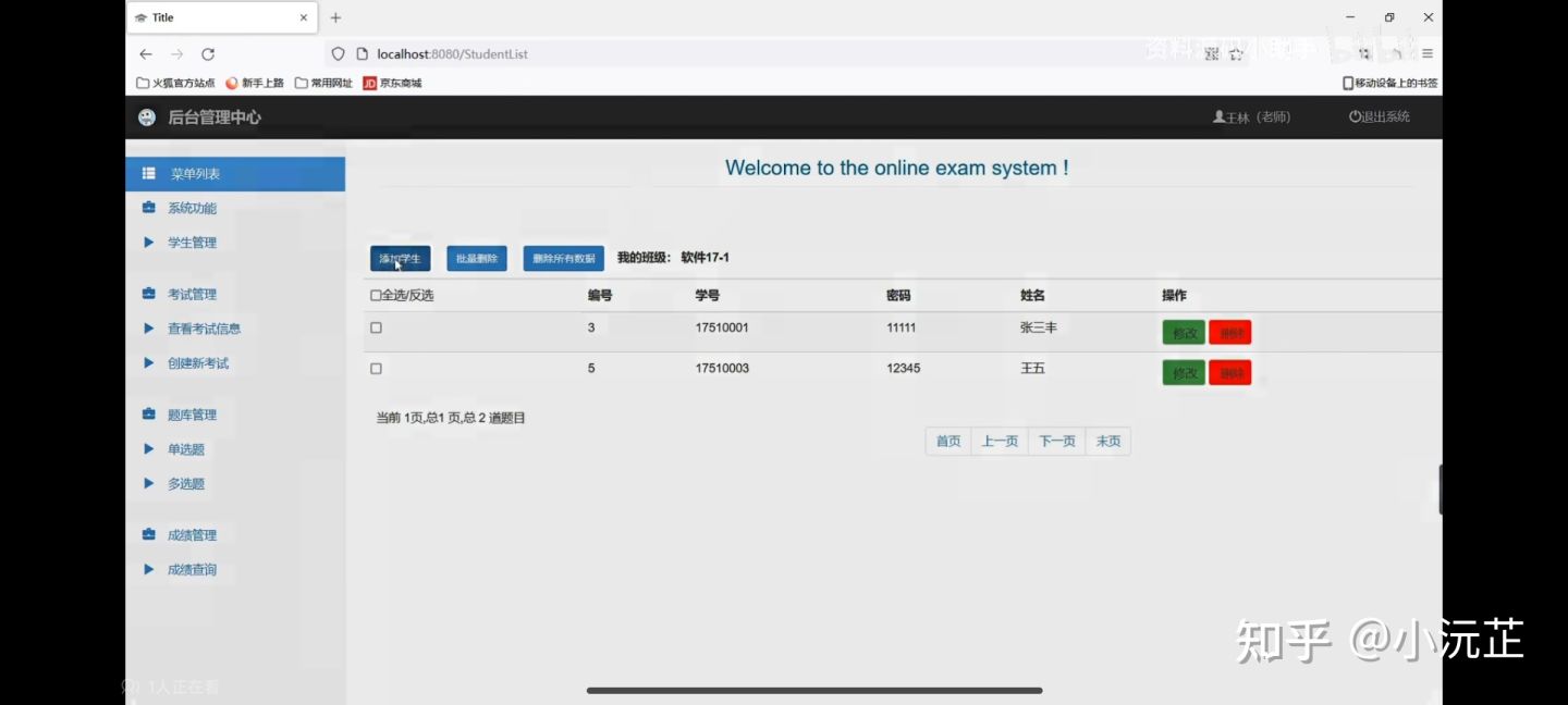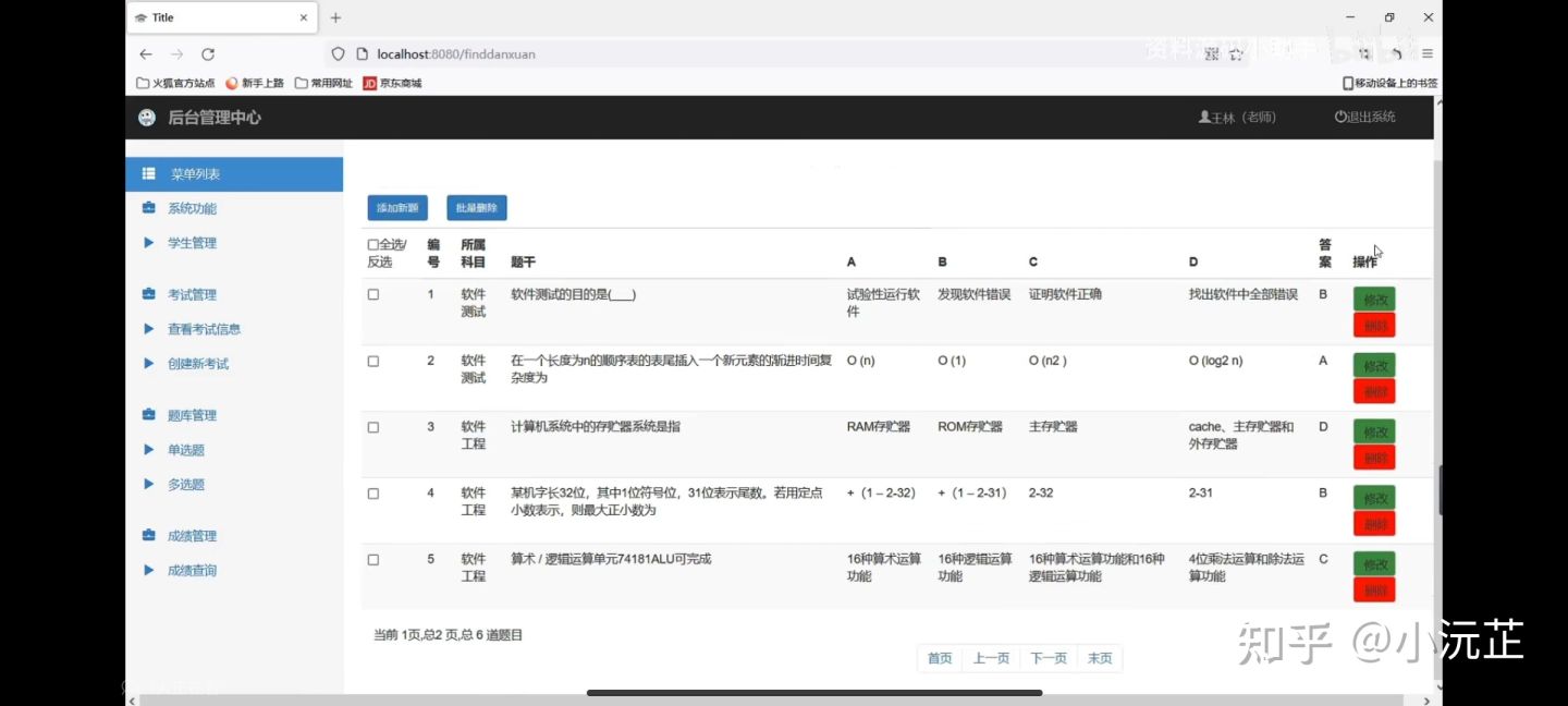教师的功能:学生管理(对学生信息进行增删改查)/考试管理(对考试进行增删改查)/题库管理(对题库信息进行增删改查)/成绩管理(对成绩信息进行增删改查)