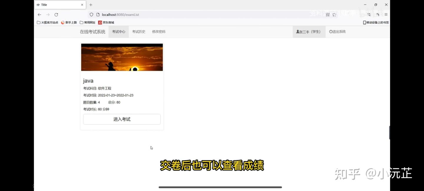 学生的功能:考试中心(学生上线进行考试)/修改密码管理/考试查看自己的成绩