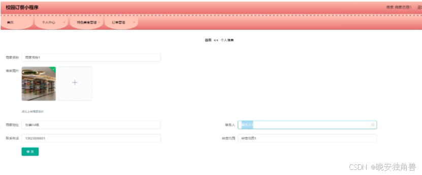 商家可以管理美食信息和订单信息,可以为用户配送。商家权限的功能实现界面如下图5.9所示: