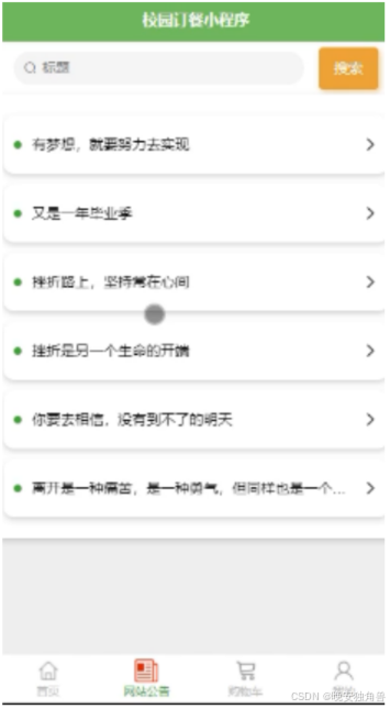 用户可以在前台浏览网站公告内容,也可以搜索网站公告内容。网站公告功能的实现界面如下图5.6所示: