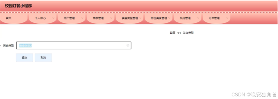 管理员可以管理美食类型、美食信息、订单信息、用户信息、商家信息、公告信息等。管理员权限的功能实现界面如下图5.10所示: