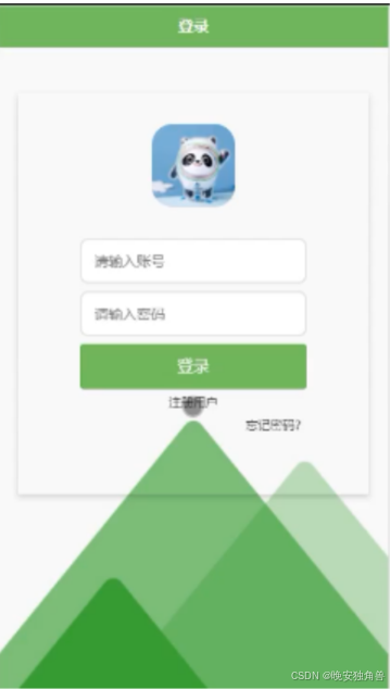 本系统中可以保证安全的功能就是用户登录功能,登录可以验证用户的身份,用户可以注册,当密码忘记后也可以通过忘记密码功能进行找回。在用户登录界面里采用上中下的方式进行设计。在上设计的是功能的名称,在中设计的是账号和密码的输入框,在下设计的是用户注册和忘记密码功能。用户登录功能的实现界面如下图5.1所示: