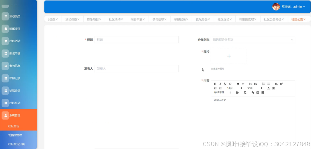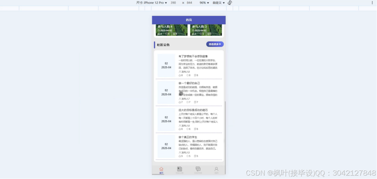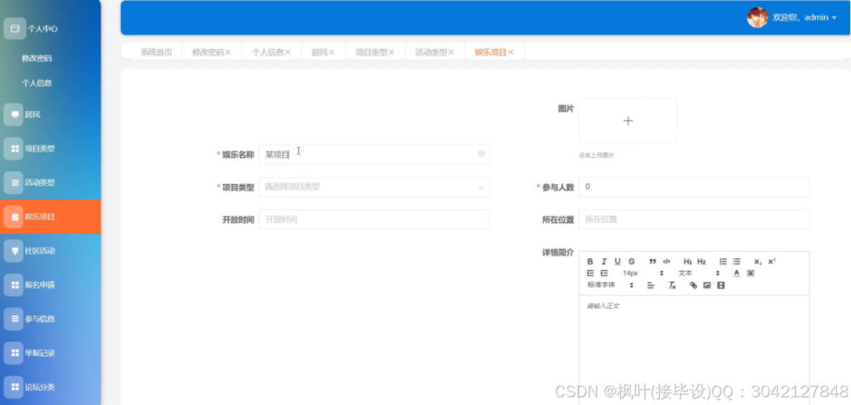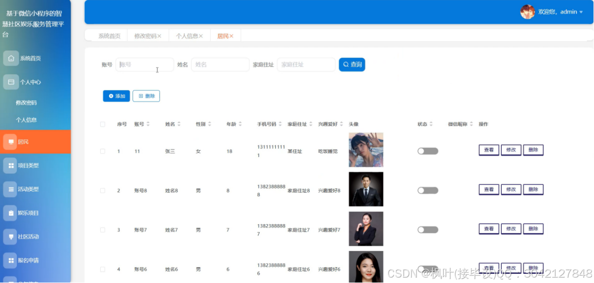 本研究旨在构建基于微信小程序的智慧社区娱乐服务管理平台,以解决传统社区娱乐服务管理的不足,提升居民生活质量与社区凝聚力。研究采用前后端分离架构,前端基于微信小程序开发,后端运用Java语言和SpringBoot框架,并结合MySQL数据库存储数据,利用协同过滤推荐算法实现个性化推荐。通过可行性分析、系统设计、功能实现及测试等环节完成平台搭建。经测试,平台各功能基本满足需求,能为居民提供便捷的娱乐服务信息获取与参与渠道,为管理员提供高效的管理工具,在提升居民娱乐体验、促进社区互动交流、优化管理效率等方面具有重要意义,为智慧社区建设提供了有力支持,推动社区管理服务的信息化、智能化发展。