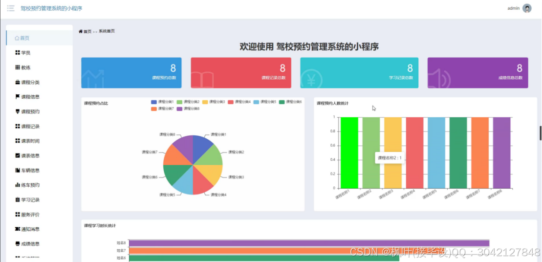 后台管理系统则为管理员提供了一个强大的工具,用于处理学员信息、教练分配、课程安排等日常运营任务。通过Spring Boot框架和MySQL数据库的结合使用,后台系统实现了高效的数据处理和稳定的性能表现。教练也能通过专属界面管理自己的课程信息,查看学员的学习记录和评价,以及调整课表,从而提供更加个性化的教学服务。