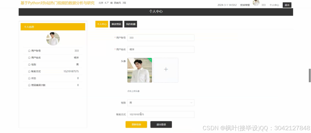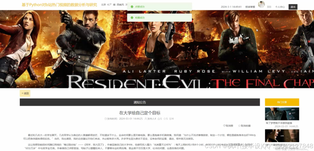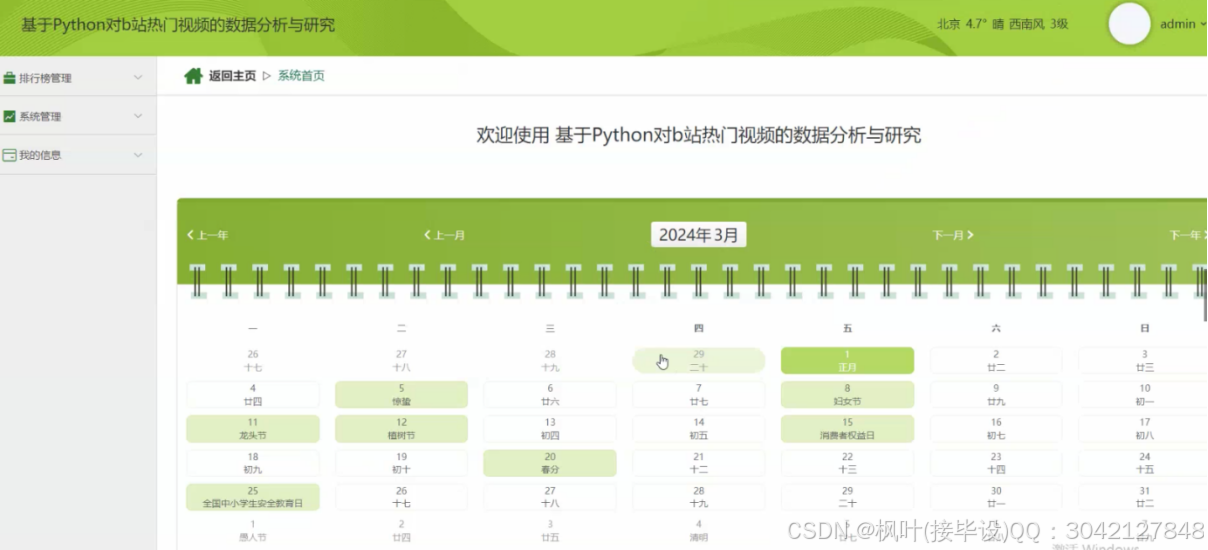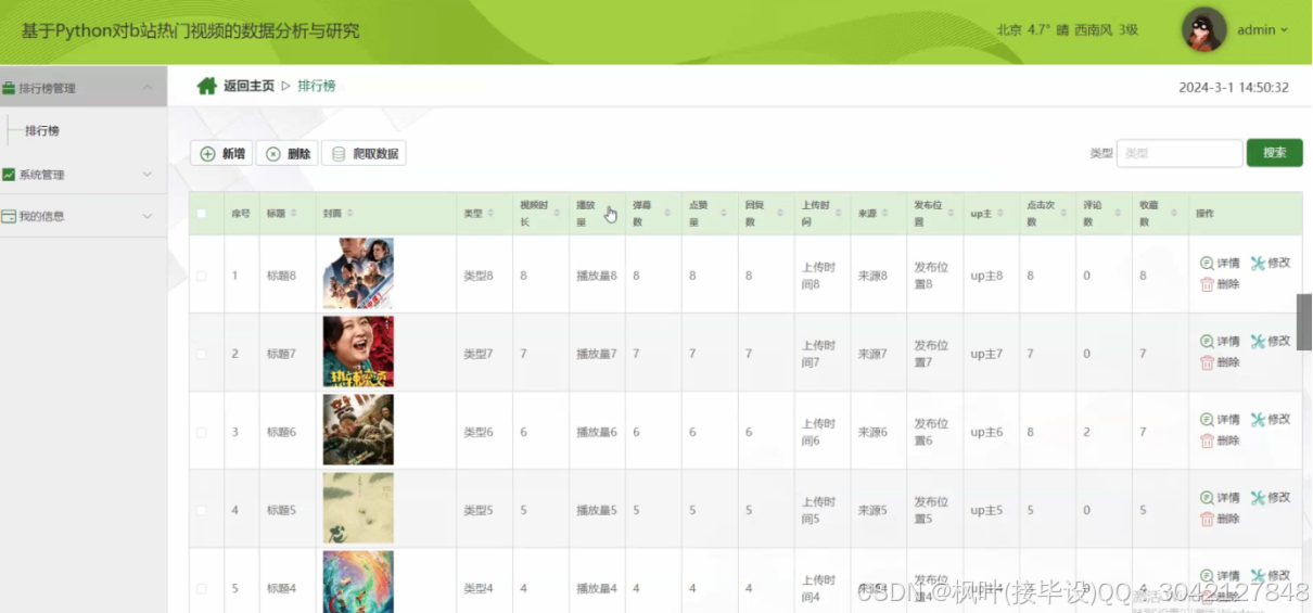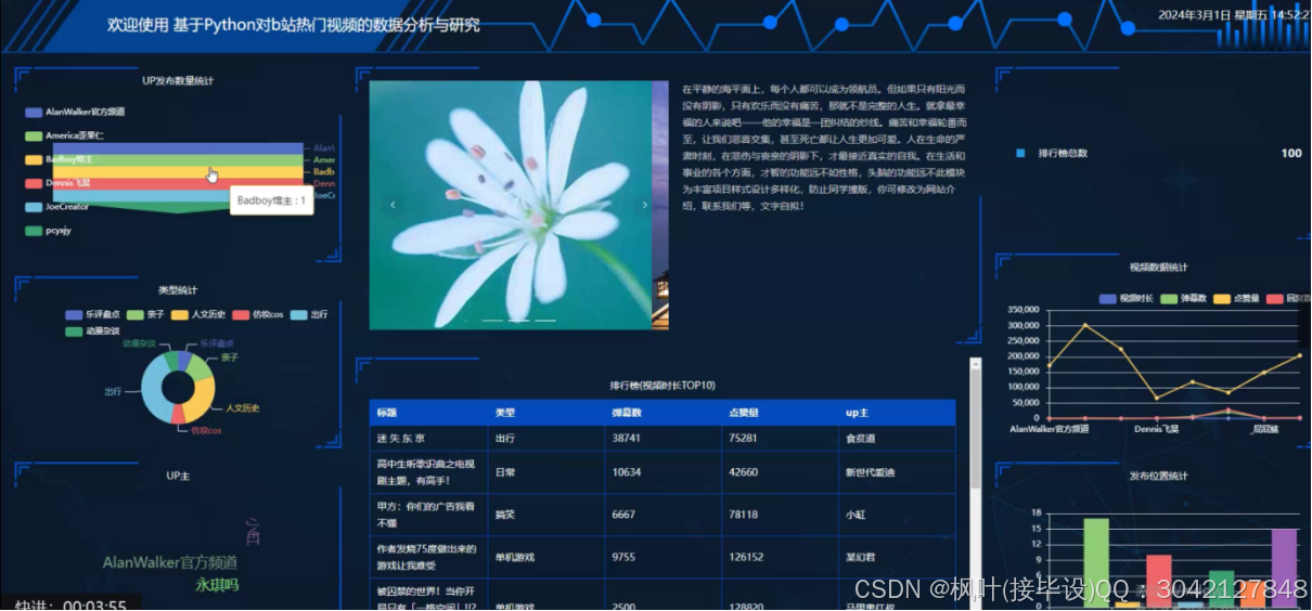 关键词:对B站热门视频的数据分析与研究; Django框架;python语言