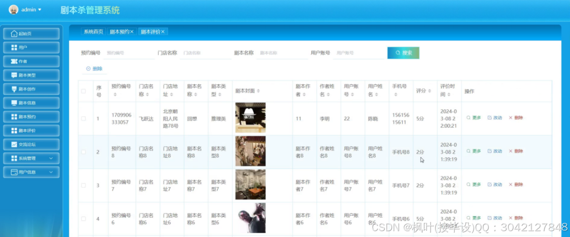 系统对于Java、B/S结构、MySql进行了较为深入的学习与应用。主要针对系统的设计,描述,实现和分析与测试方面来表明开发的过程。开发中使用了springboot框架和MySql数据库技术搭建系统的整体架构。利用这些技术结合实际需求开发了具有用户、作者、剧本类型、剧本创作、剧本信息、剧本预约、剧本评价、交流论坛、系统管理、用户信息等功能的系统,最后对系统进行相应的测试,测试系统有无存在问题以及测试用户权限来优化系统,最后系统达到预期目标。