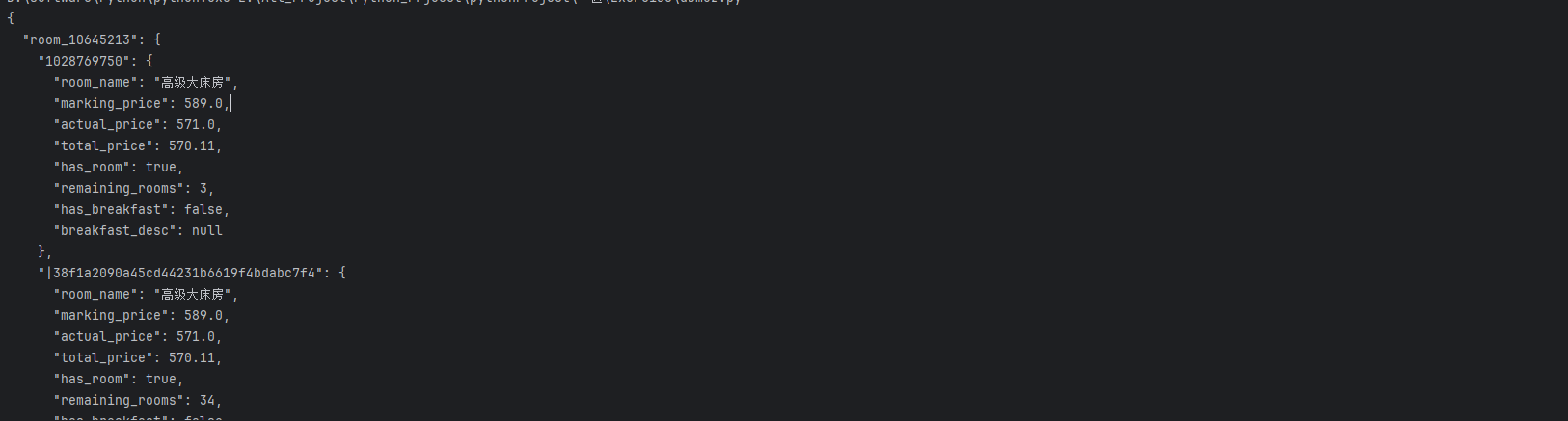 将上述两个步骤合在一起就可以实现爬取某个酒店的房间详细数据,具体实现可以自行组合,如有需求也可以私信联系UP主。