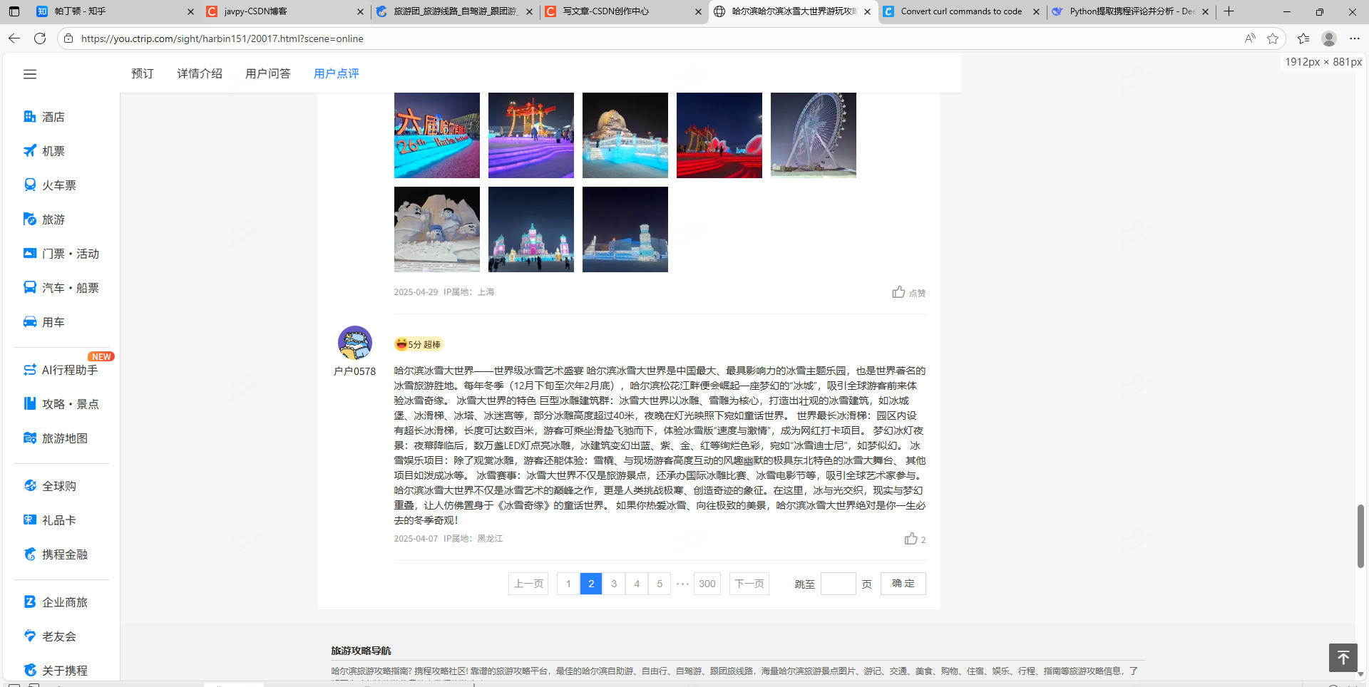 1.打开携程网,找到某个景区点击跳转到详情页面https://you.ctrip.com/sight/harbin151/20017.html?scene=online
