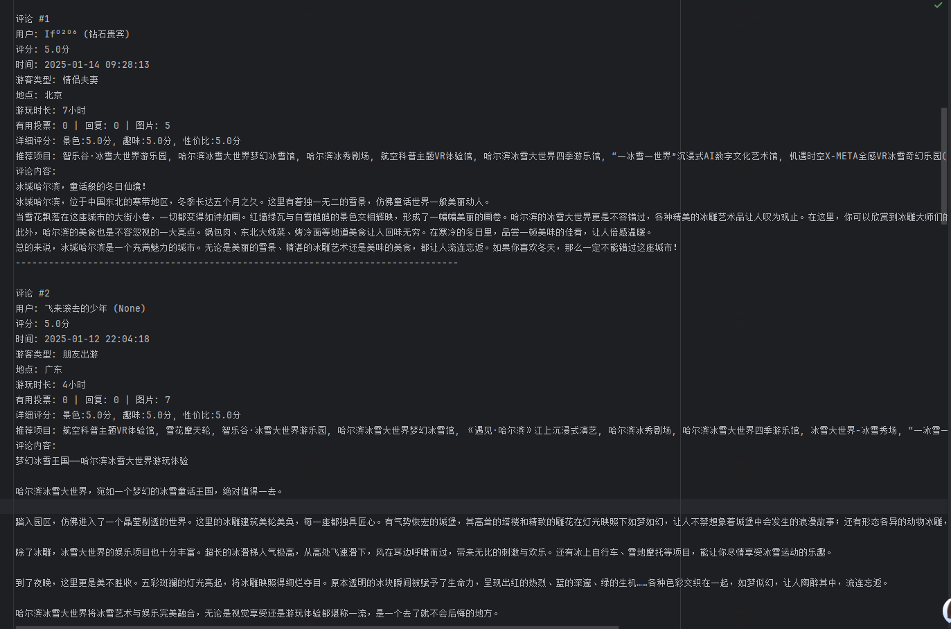 f.write("哈尔滨冰雪大世界用户评论分析\n")