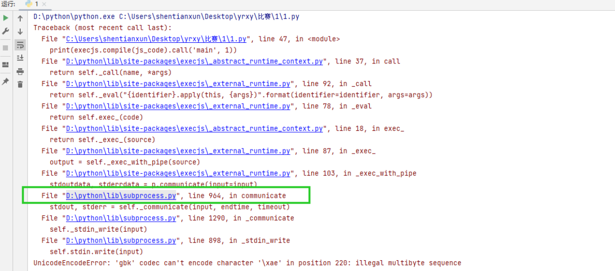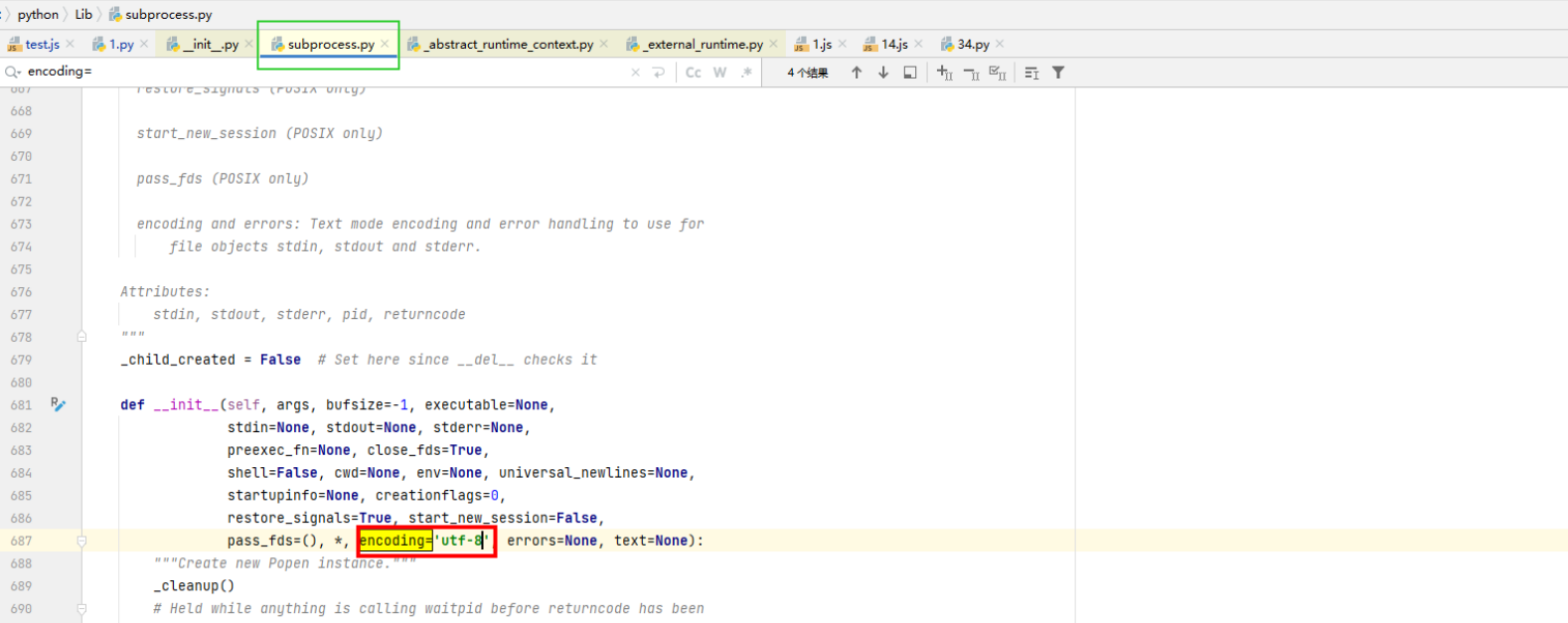 2.在subprocess.py文件 中 搜索 encoding= 找到指定位置