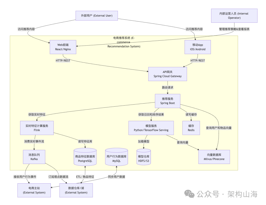 如何画: 在一个代表系统边界的大框内,画出各个容器(方框)。清晰地标示出每个容器的名称、技术栈(如:Java/Spring Boot, React, MySQL),以及它们之间的交互方式(如: