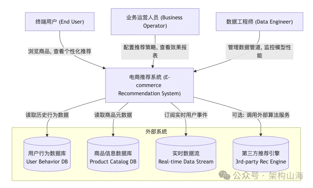 回答什么问题? 我们的系统是什么?它的核心用户是谁?它依赖哪些外部系统,又为谁提供服务?