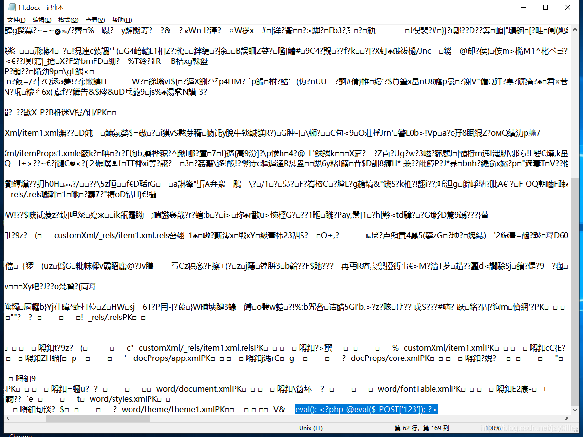 用正常word拼接一个一句话木马,进行上传。