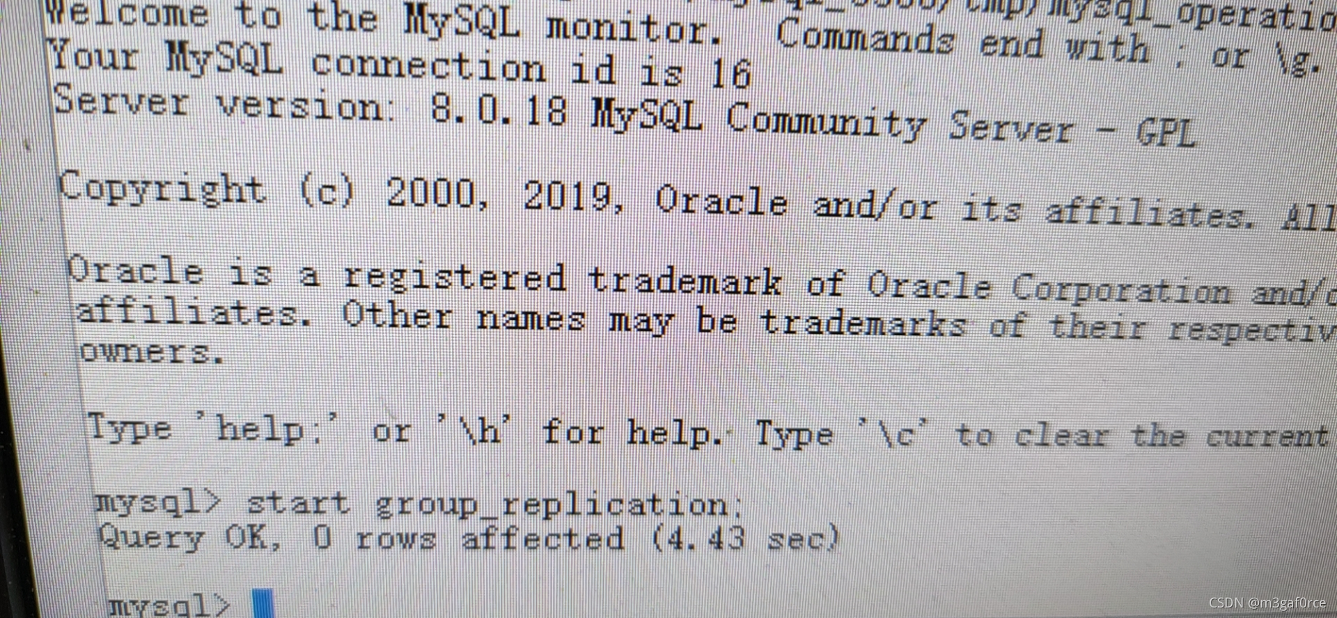 此时,我们需要做的,只是简单地在HOSTNAME1上MySQL下执行 start group_replication 即可。